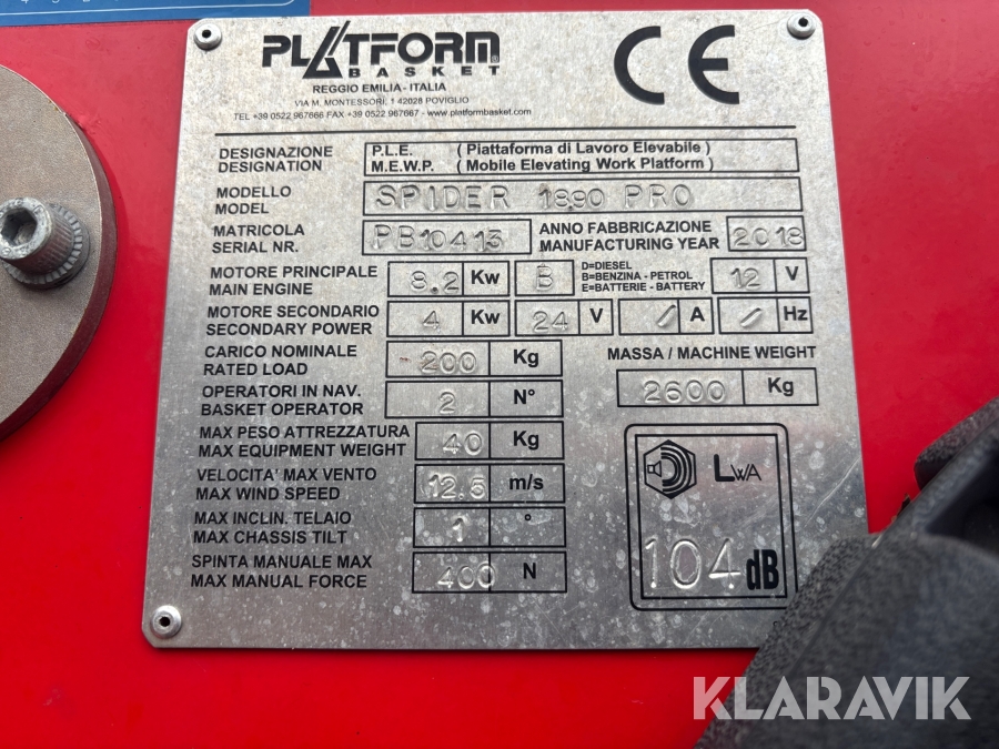 Larvbandslift Platform Basket Spider 18.90 PRO - Hybrid