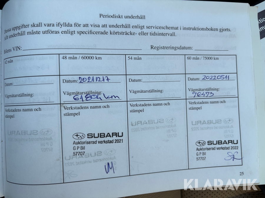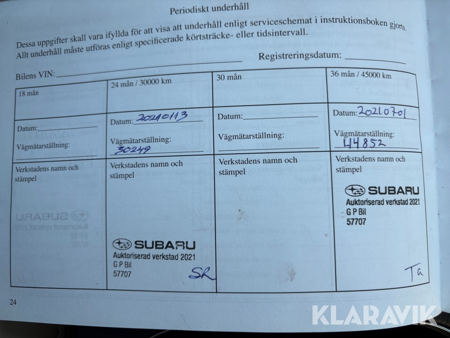 • Serie/chassinummer framgår
