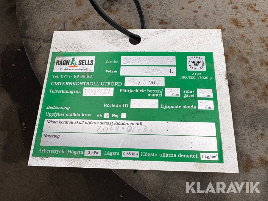 Spilloljetank 2 m3