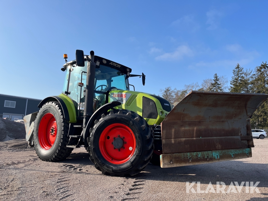 Traktor Claas A21 Arion 410 med vikplog och sandspridare
