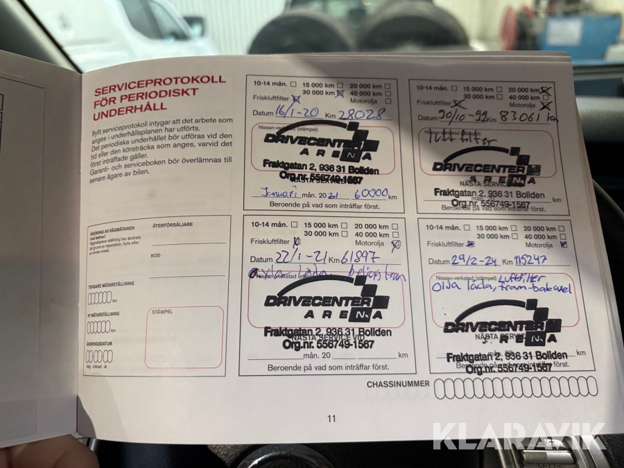 • Serie/chassinummer framgår