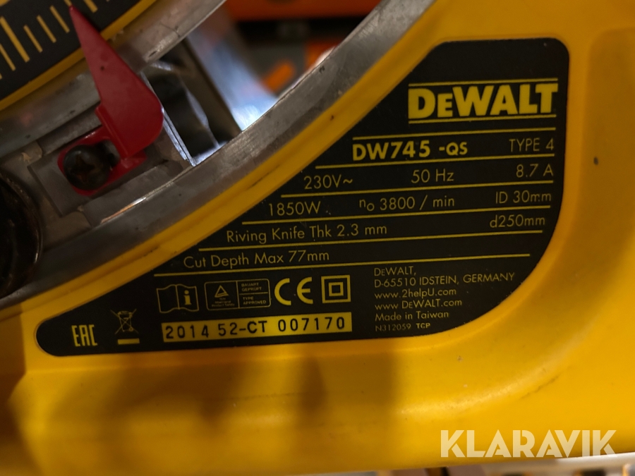 Klyvsåg 1 st och sågbänk 1 st Dewalt DW 745 / DE 7400