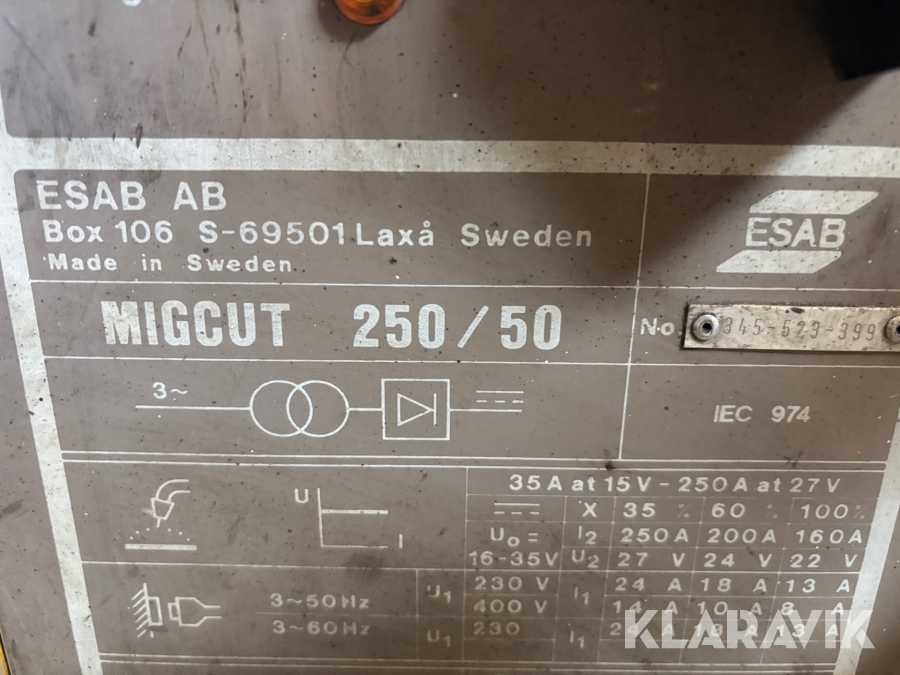Mig-svets/plasma ESAB Migcut 250/50