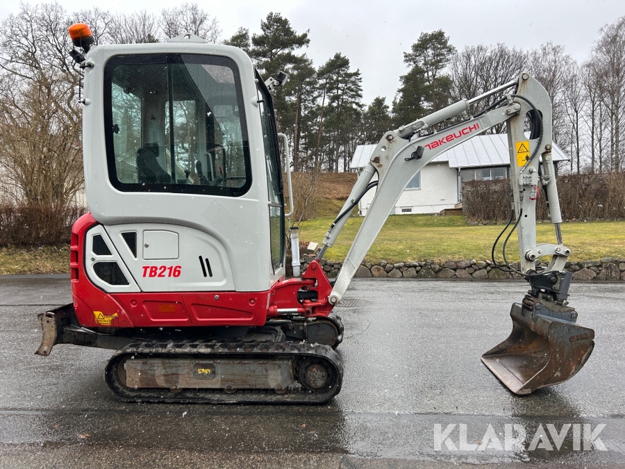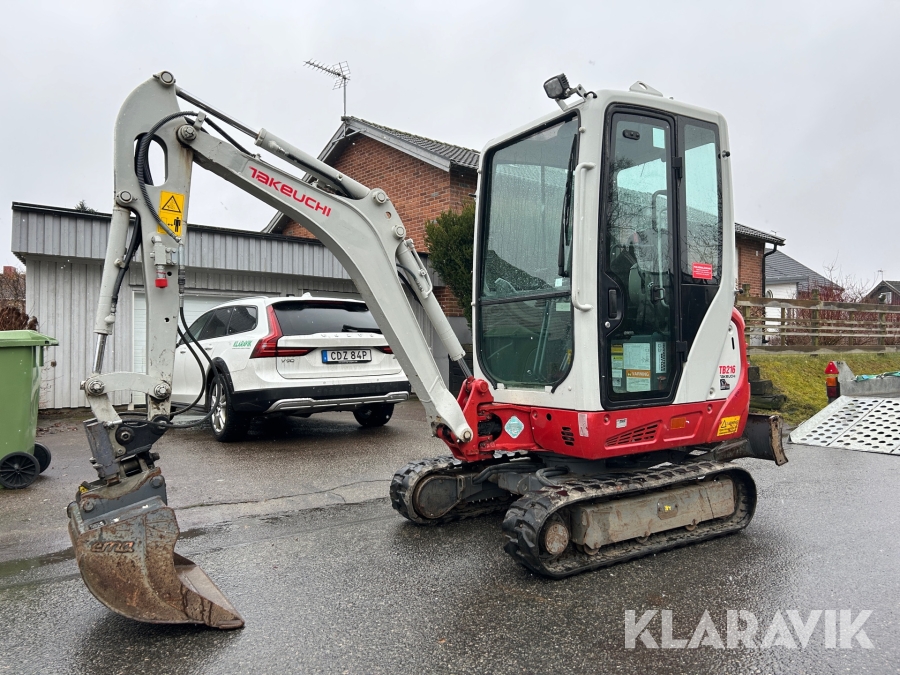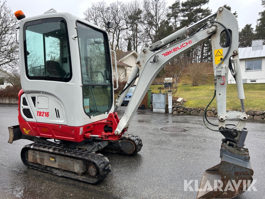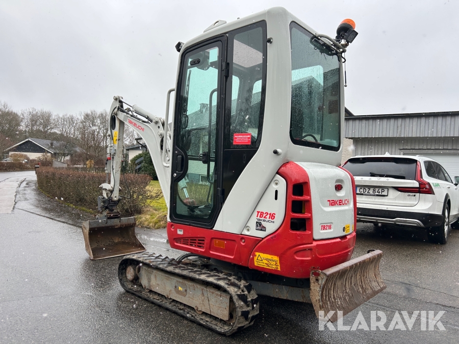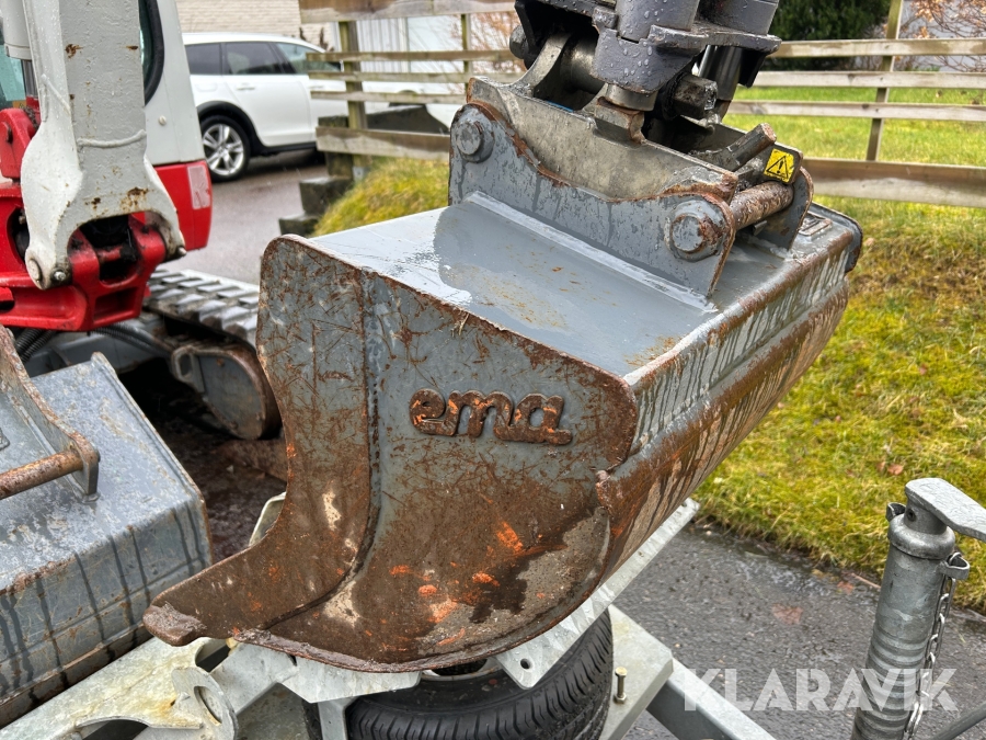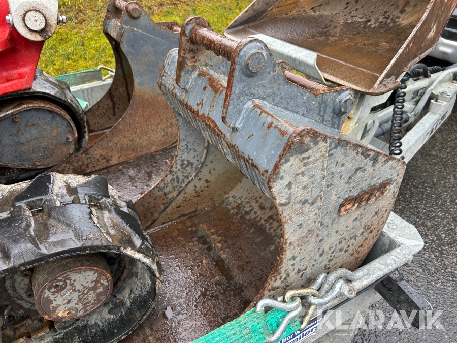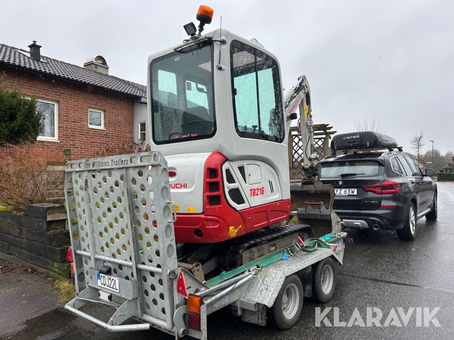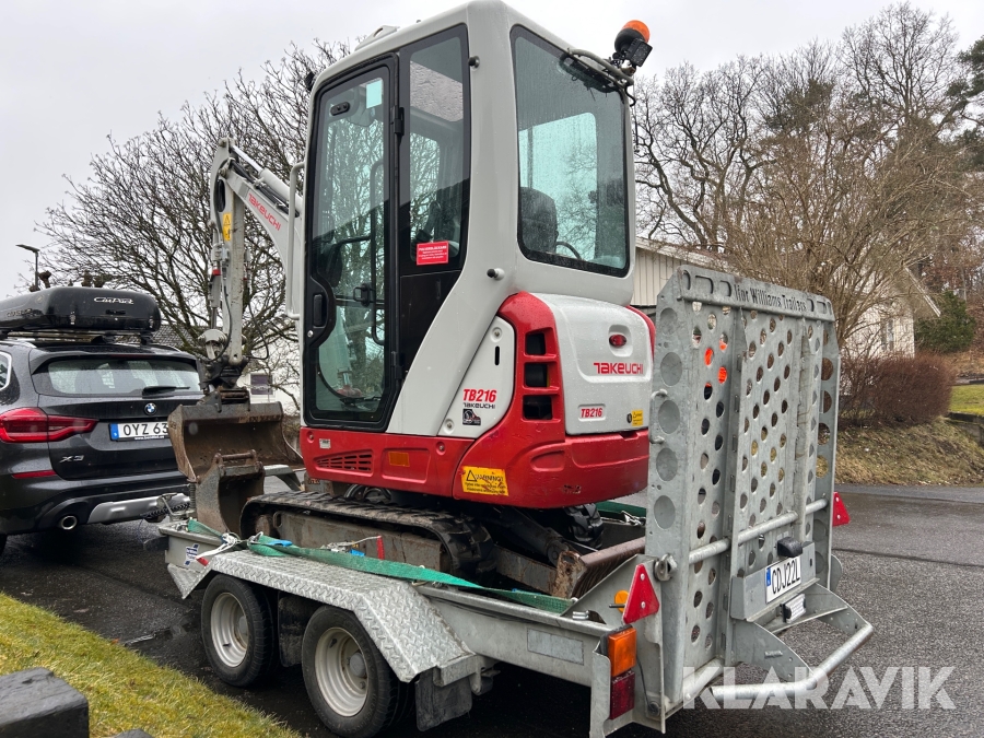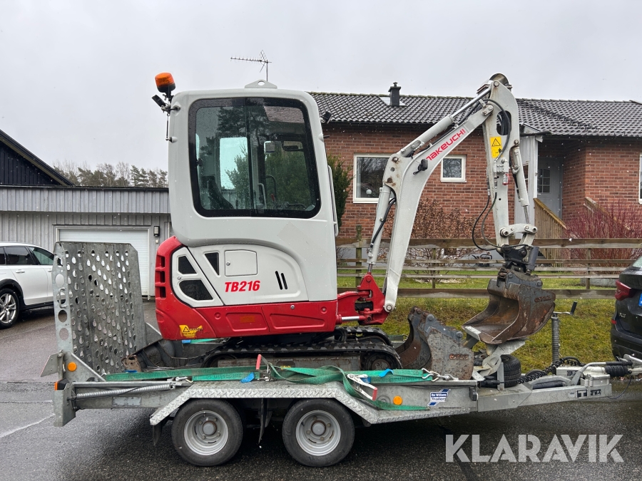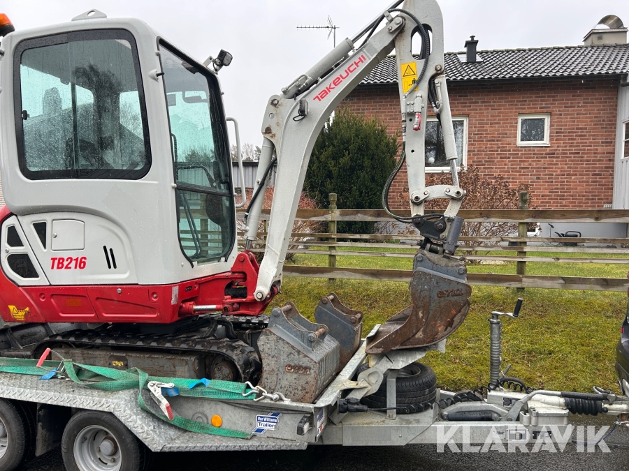 Bandgrävare Takeuchi TB216 med släpkärra och skopor