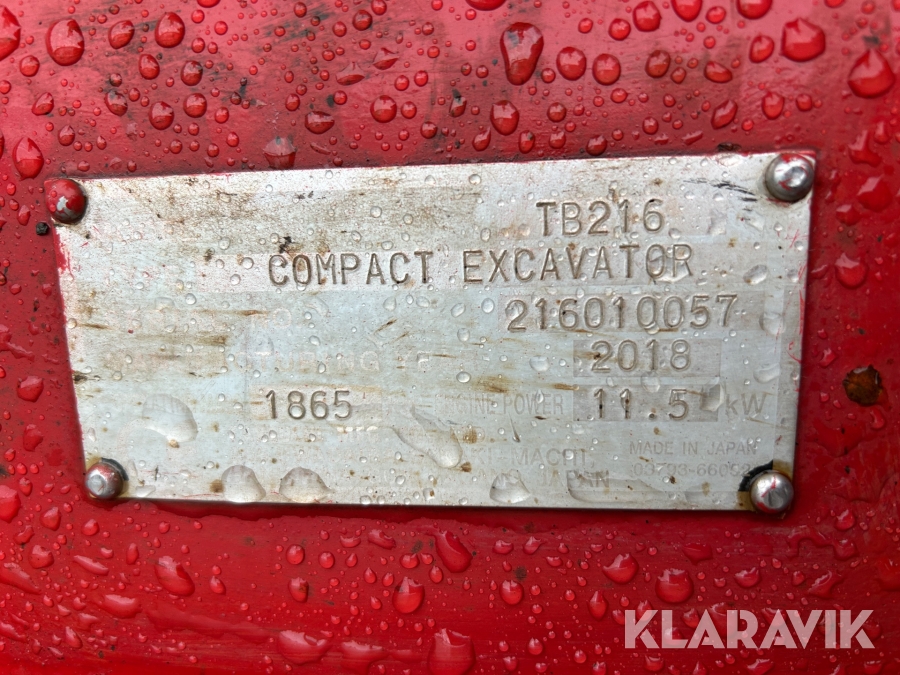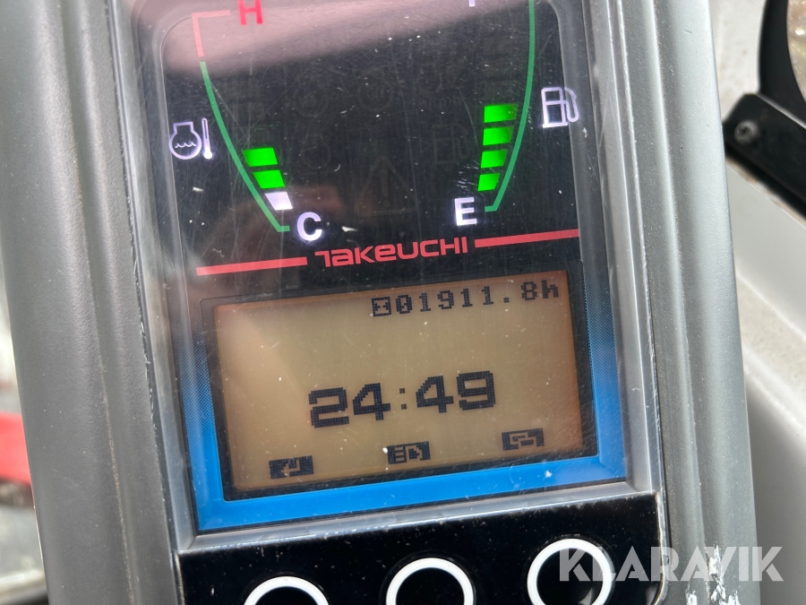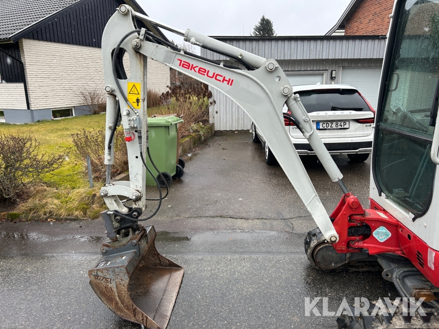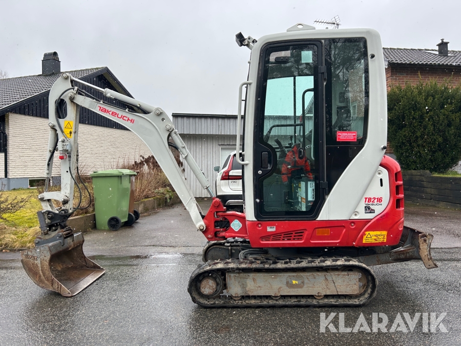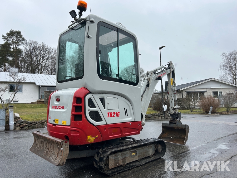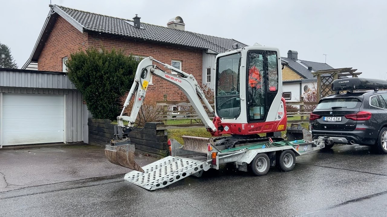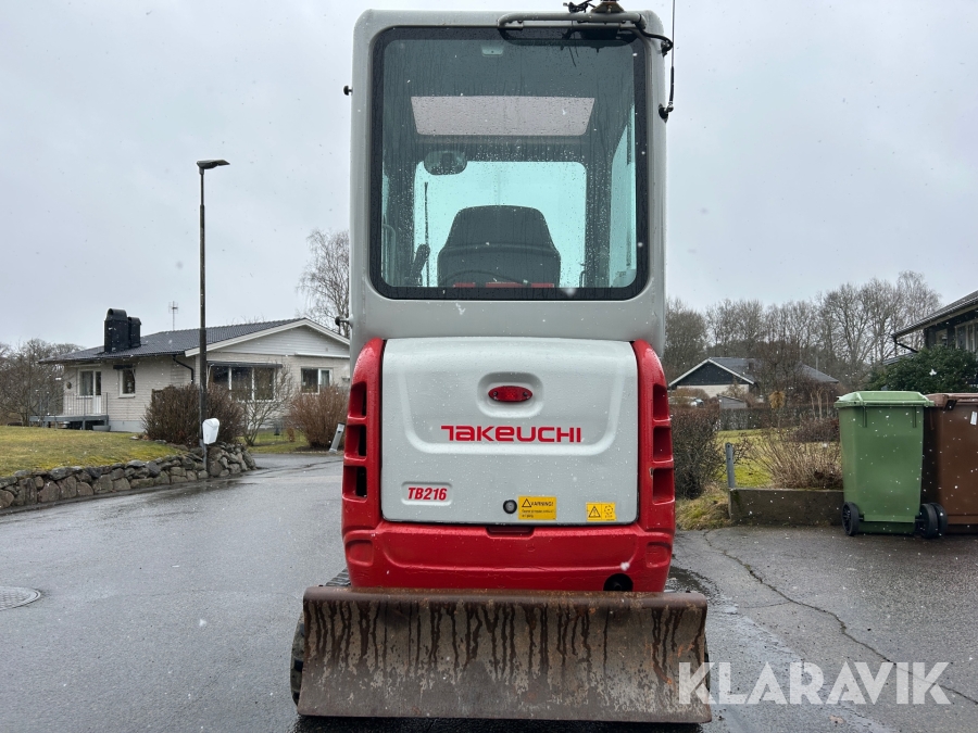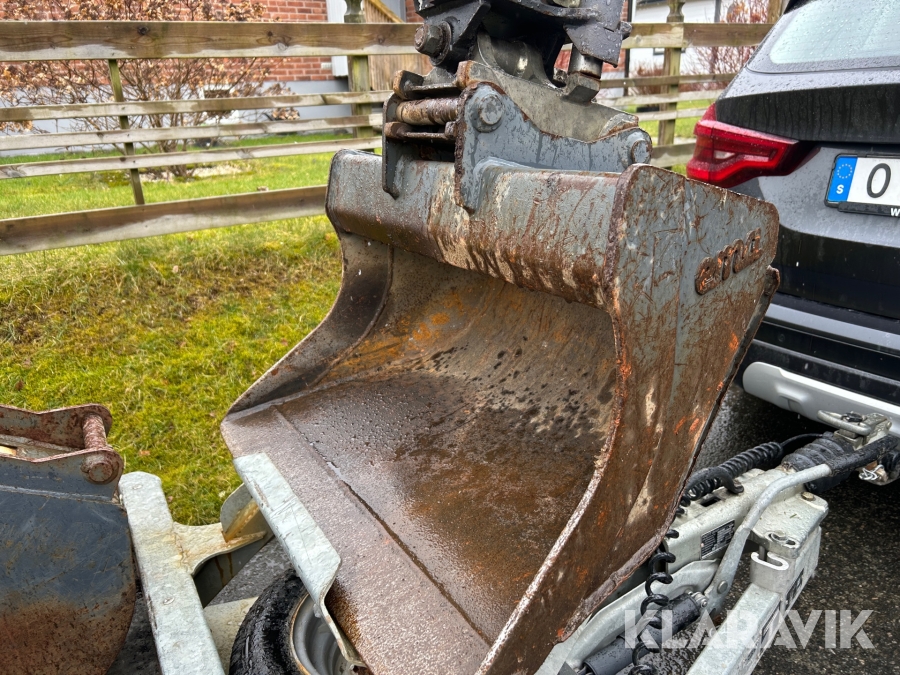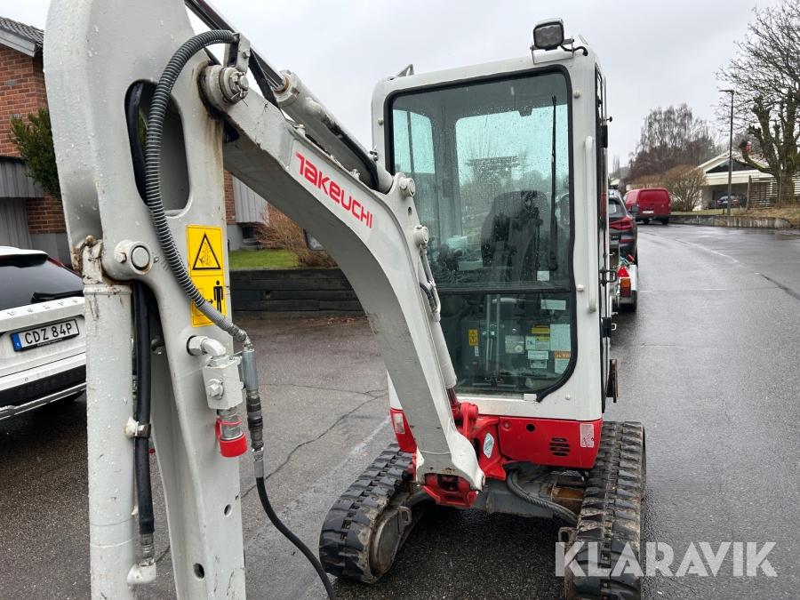 Bandgrävare Takeuchi TB216 med släpkärra och skopor