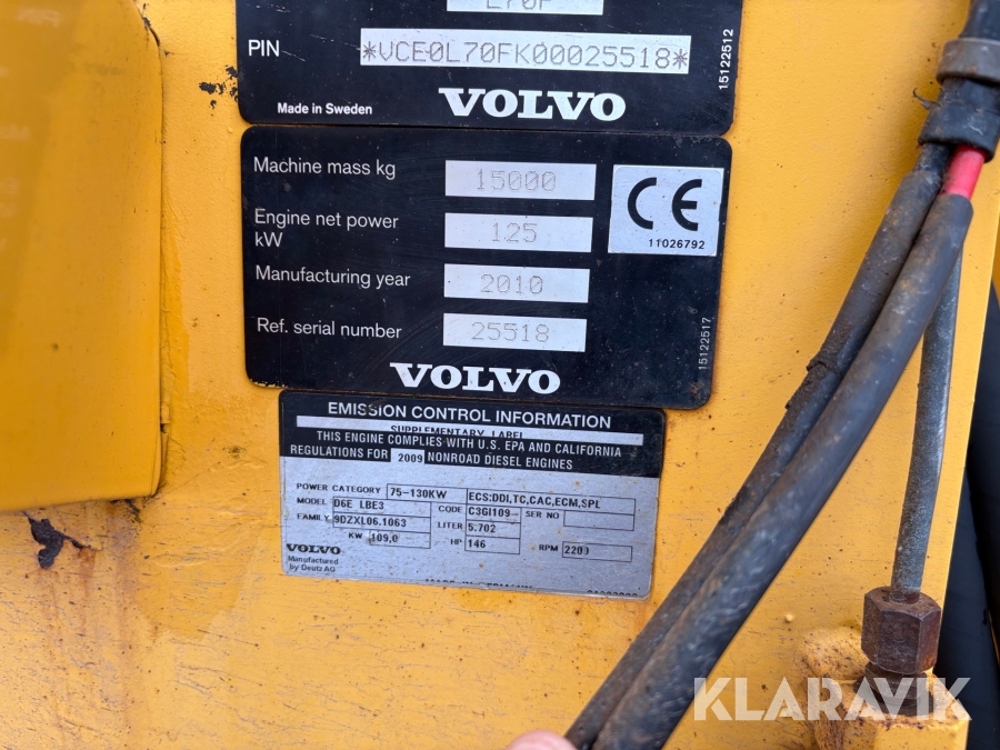 Hjullastare Volvo L70F med långbom & OilQuick-fäste