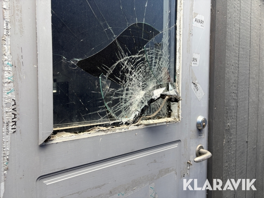 Glaset i dörren är trasigt. Se bild