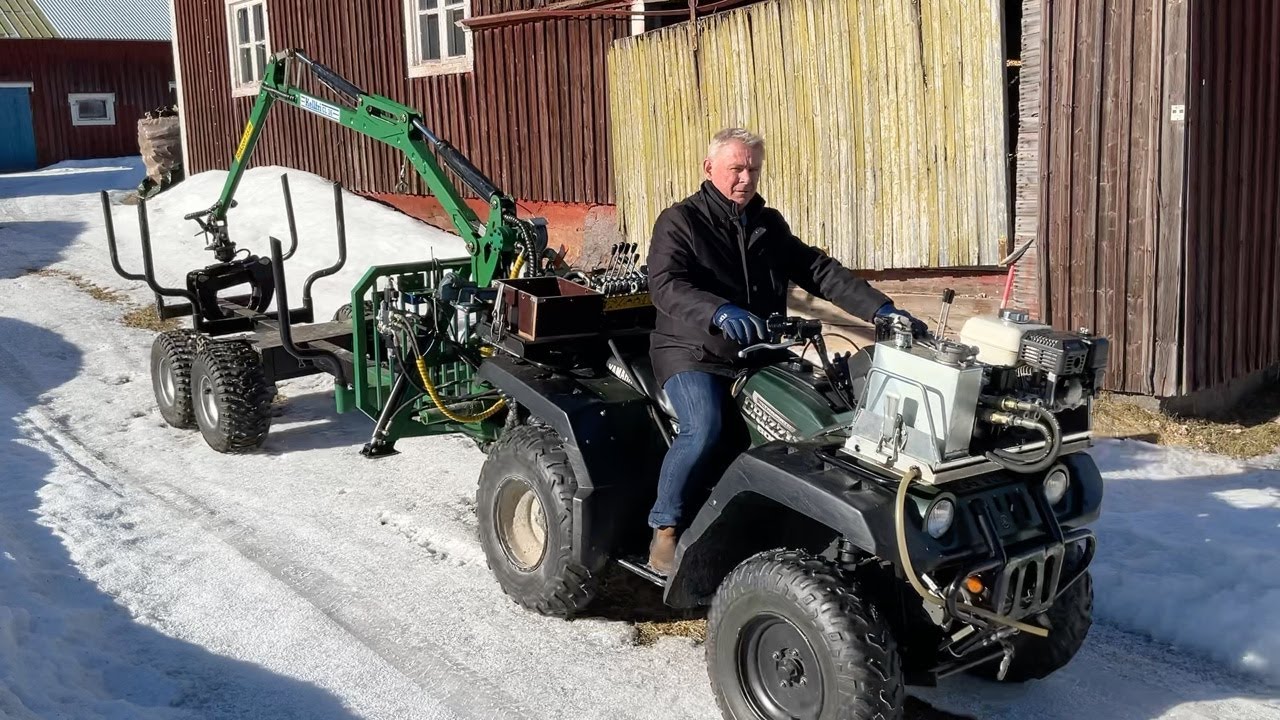 Fyrhjuling Yamaha Grizzly 600 med skogsvagn och kran