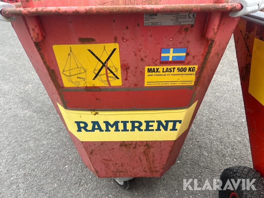 Pga platsbrist är det viktigt att du som köpare hämtar inom 12 dagar från auktionsavslut. Vid frågor om frakt kontakta trade@ramirent.se.