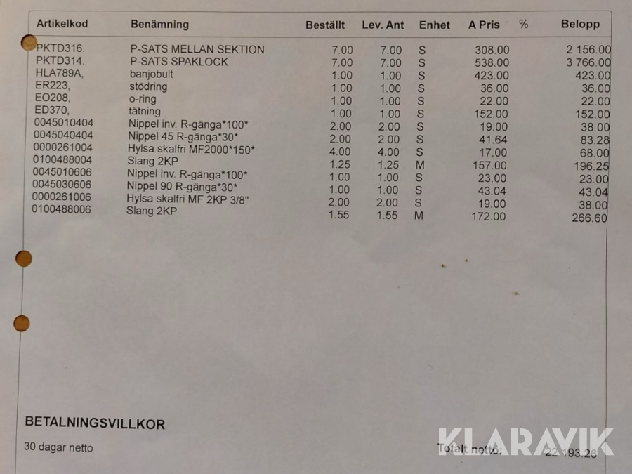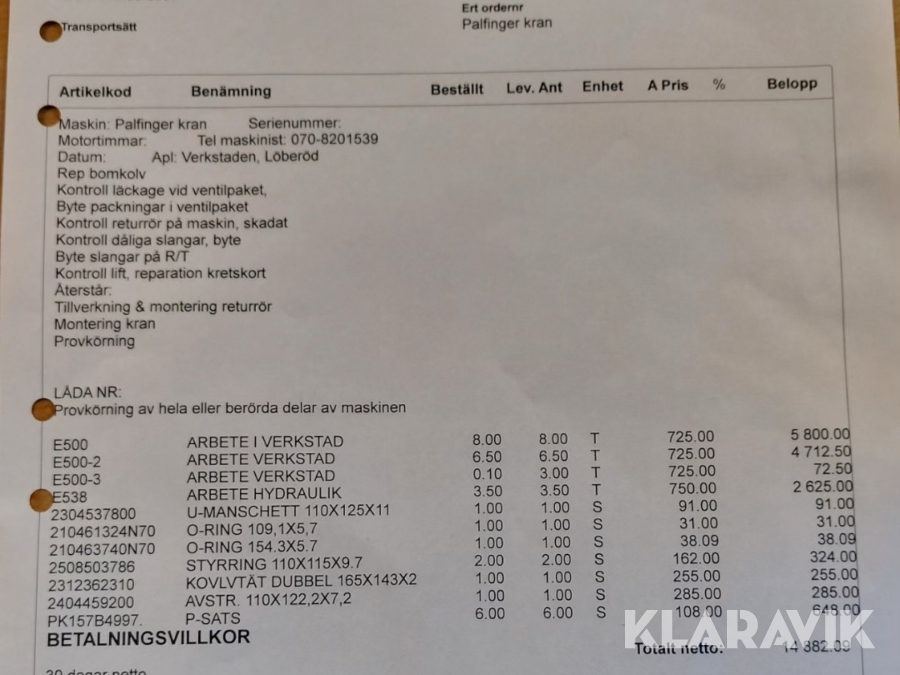 Boka frakt? Det finns ingen specifik information om frakt för just det här objektet, men om du skickar oss en förfrågan via vårt fraktformulär, så undersöker vi möjligheten. Paket, EU-pall eller större maskin? Klaravik har fraktavtal med Schenker och i de fall vi kan hjälpa till med frakt gäller det objekt som ryms i paket eller inom en EU-pall (upp till 120*80 cm och 990 kg). Det går att beställa frakt inom Sverige, dock inte till utlandet. Vid frakt på större maskiner rekommenderar vi gärna transportföretag som du kan kontakta.