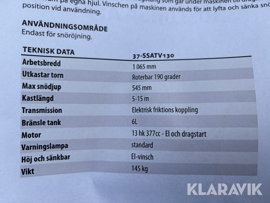 Du som köpare är skyldig att kontrollera objektet vid hämtning. Skiljer sig något avsevärt jämfört med informationen på klaravik.se? Kontakta då Klaravik innan du tar objektet från platsen. Läs fullständiga köpvillkor.