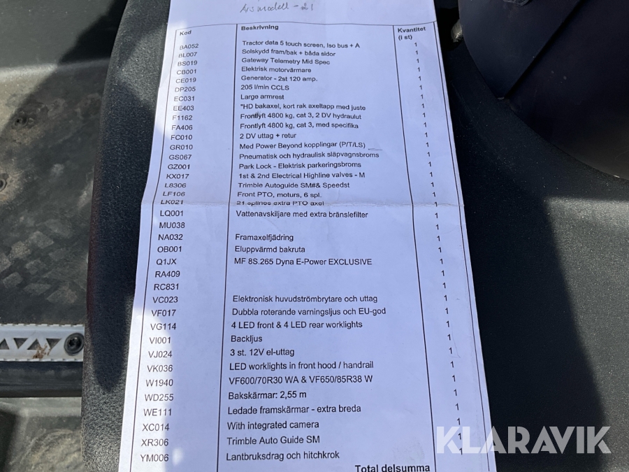 Boka frakt? Det finns ingen specifik information om frakt för just det här objektet, men om du skickar oss en förfrågan via vårt fraktformulär, så undersöker vi möjligheten. Paket, EU-pall eller större maskin? Klaravik har fraktavtal med Schenker och i de fall vi kan hjälpa till med frakt gäller det objekt som ryms i paket eller inom en EU-pall (upp till 120*80 cm och 990 kg). Det går att beställa frakt inom Sverige, dock inte till utlandet. Vid frakt på större maskiner rekommenderar vi gärna transportföretag som du kan kontakta.
