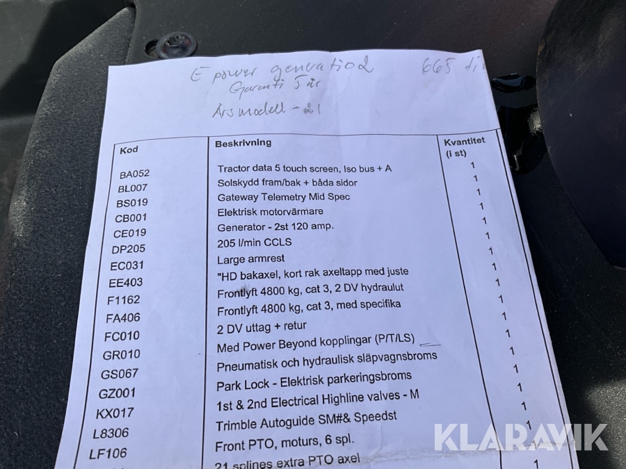 • Serie/chassinummer framgår