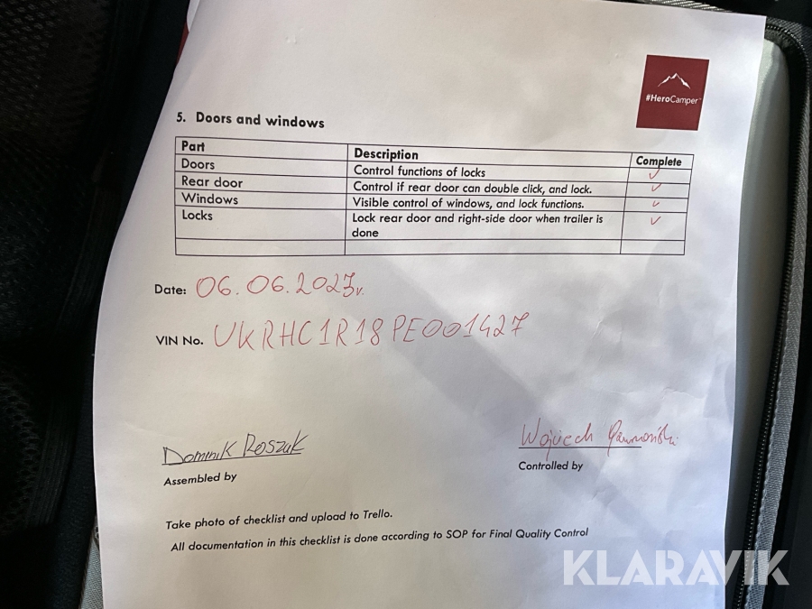 • Serie/chassinummer framgår