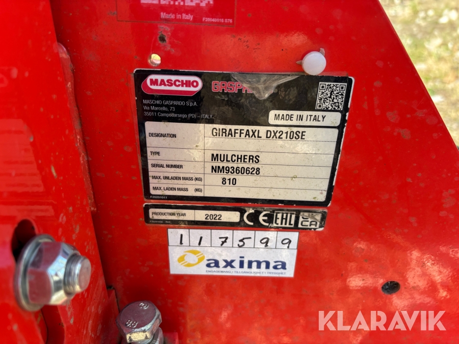 • Serie/chassinummer framgår