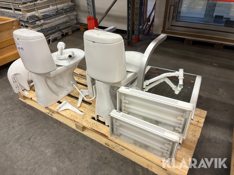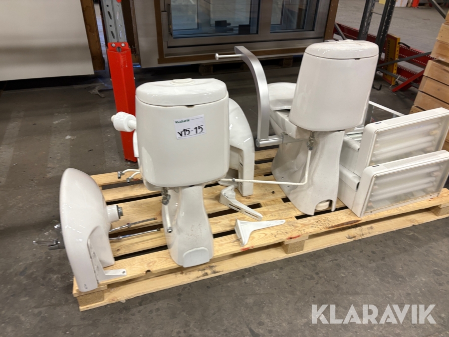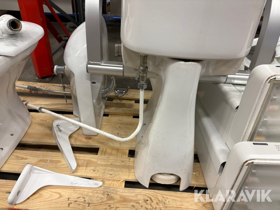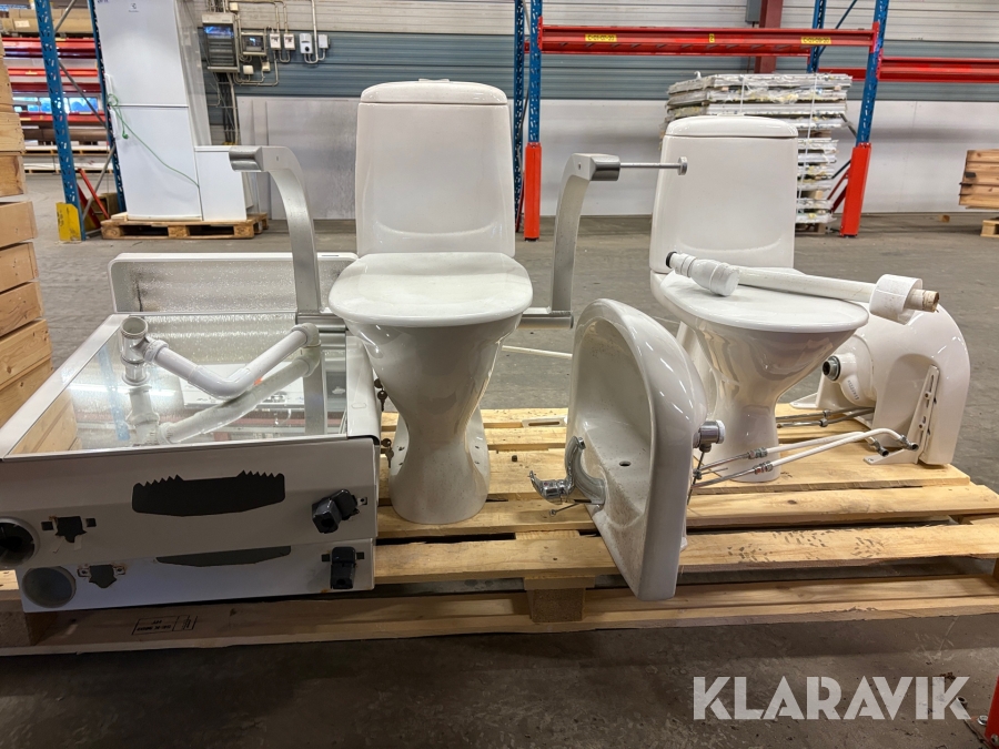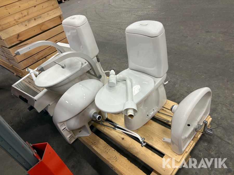 Toalettstolar, handfat och hygienskåp