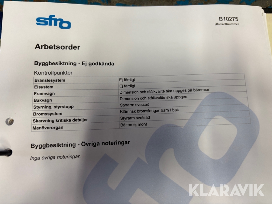 Du som köpare är skyldig att kontrollera objektet vid hämtning. Skiljer sig något avsevärt jämfört med informationen på klaravik.se? Kontakta då Klaravik innan du tar objektet från platsen. Läs fullständiga köpvillkor.