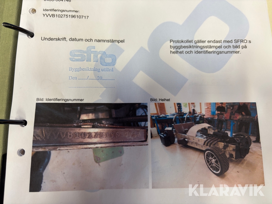 • Serie/chassinummer framgår