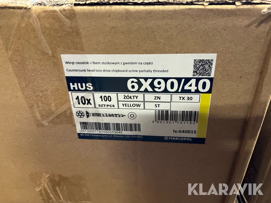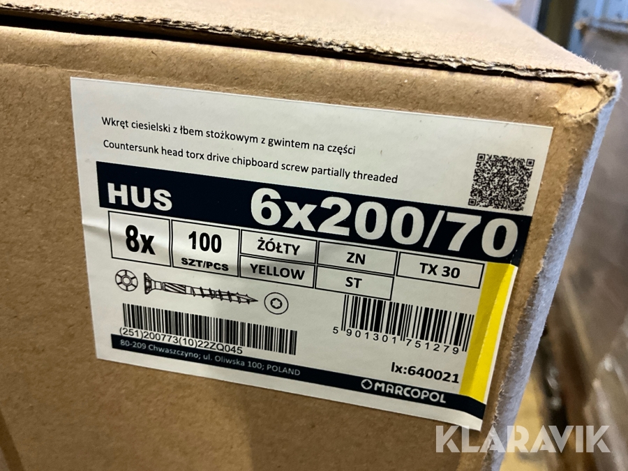 Träskruv Marcopol försänkt, ca 23 000 st för inomhusbruk, 6X240/70, 6X200/70, 6X90/40 mm.