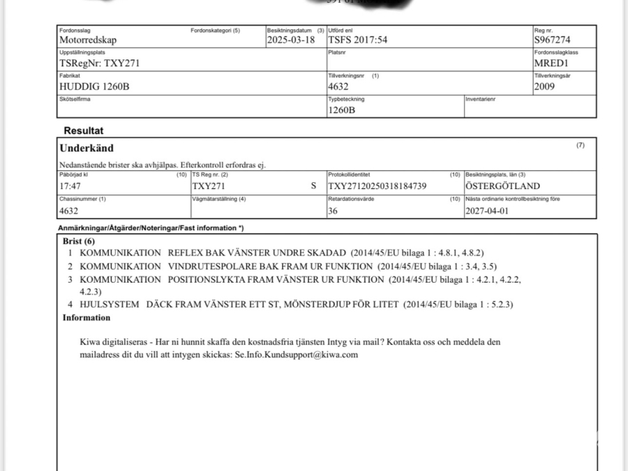 • Serie/chassinummer framgår