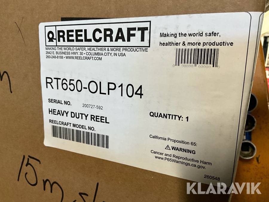 Slangvinda Reelcraft RT650-OLP104 för vatten och tryckluft inklusive 15 m slang