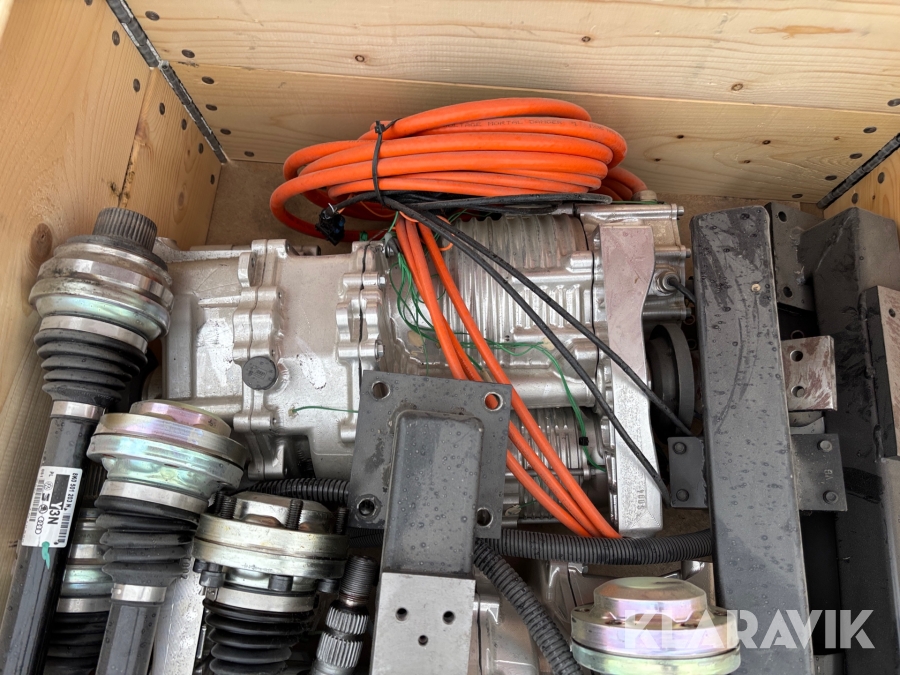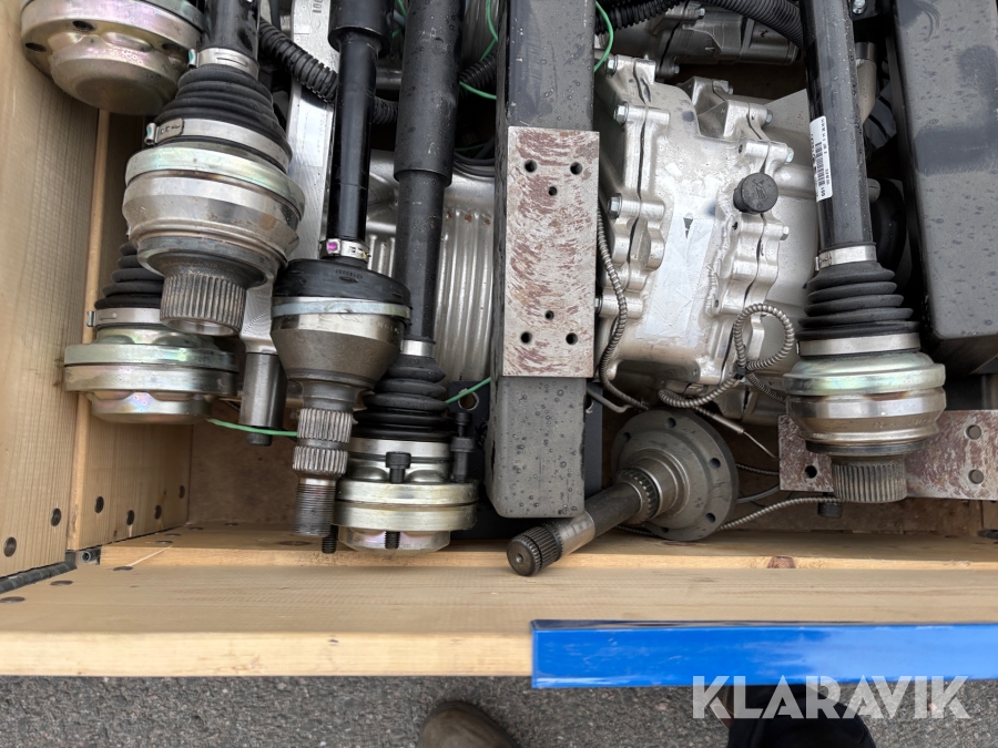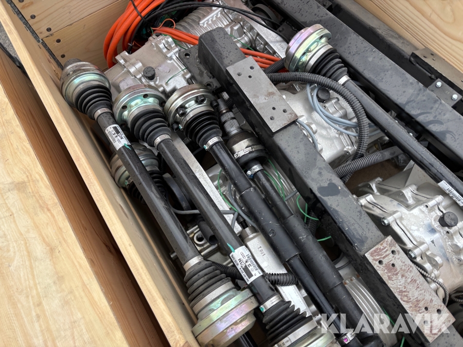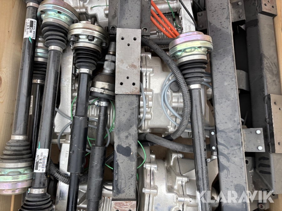 Pall med prototyp el drivpaket samt drivaxlar