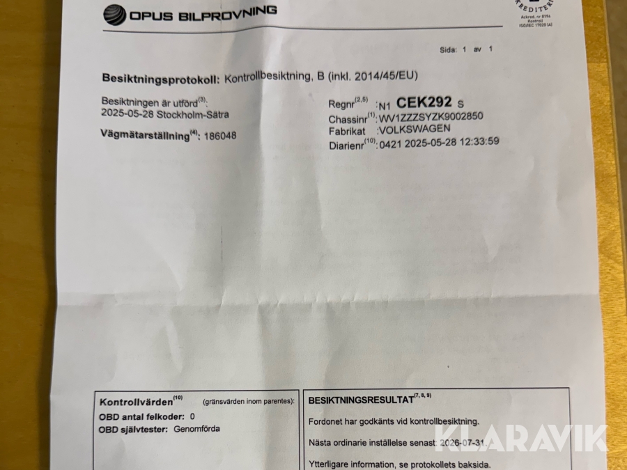 Du som köpare är skyldig att kontrollera objektet vid hämtning. Skiljer sig något avsevärt jämfört med informationen på klaravik.se? Kontakta då Klaravik innan du tar objektet från platsen. Läs fullständiga köpvillkor.