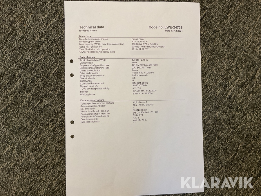 Boka frakt? Det finns ingen specifik information om frakt för just det här objektet, men om du skickar oss en förfrågan via vårt fraktformulär, så undersöker vi möjligheten. Paket, EU-pall eller större maskin? Klaravik har fraktavtal med Schenker och i de fall vi kan hjälpa till med frakt gäller det objekt som ryms i paket eller inom en EU-pall (upp till 120*80 cm och 990 kg). Det går att beställa frakt inom Sverige, dock inte till utlandet. Vid frakt på större maskiner rekommenderar vi gärna transportföretag som du kan kontakta.