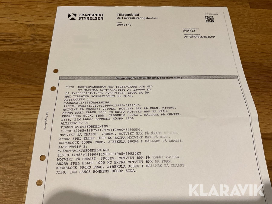 Du som köpare är skyldig att kontrollera objektet vid hämtning. Skiljer sig något avsevärt jämfört med informationen på klaravik.se? Kontakta då Klaravik innan du tar objektet från platsen. Läs fullständiga köpvillkor.
