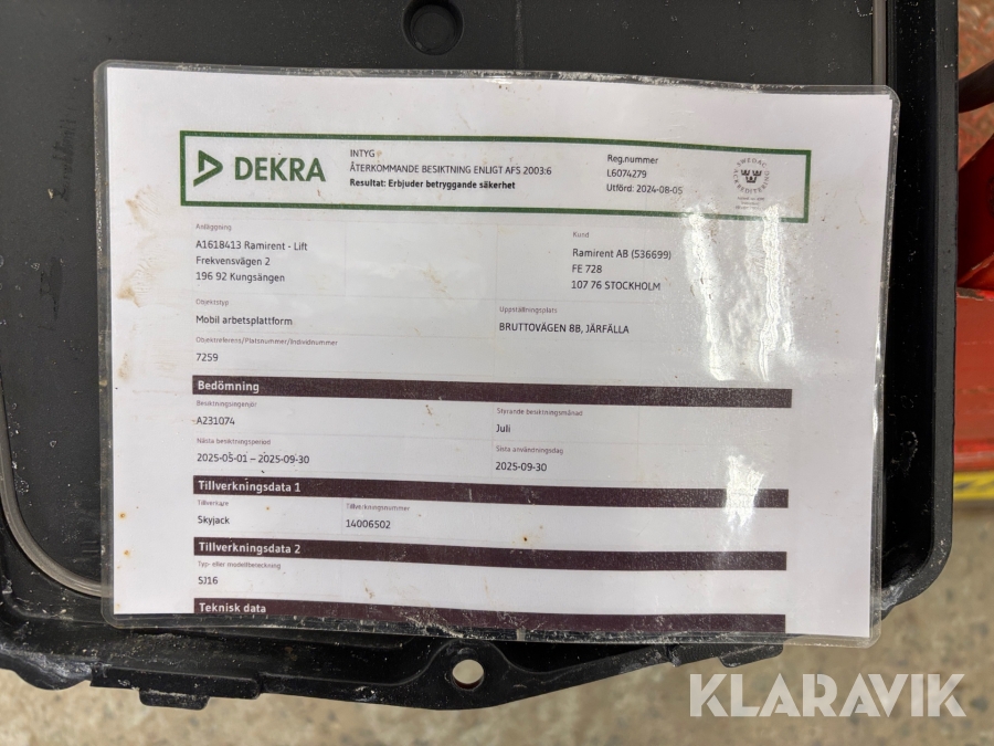 Läs om metodikenPga platsbrist är det viktigt att du som köpare hämtar inom 12 dagar från auktionsavslut. Vid frågor om frakt kontakta trade@ramirent.se.