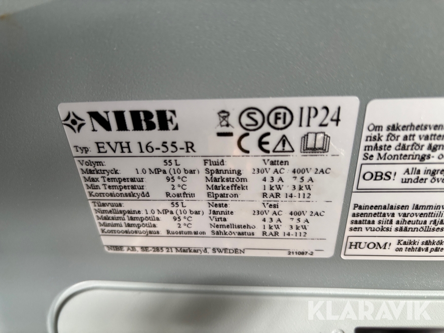 Varmvattenberedare NIBE EVH 16-55-R 1st