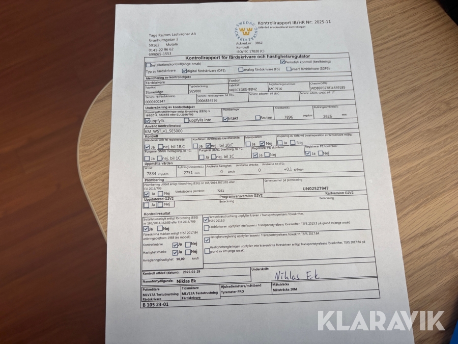 • Serie/chassinummer framgår