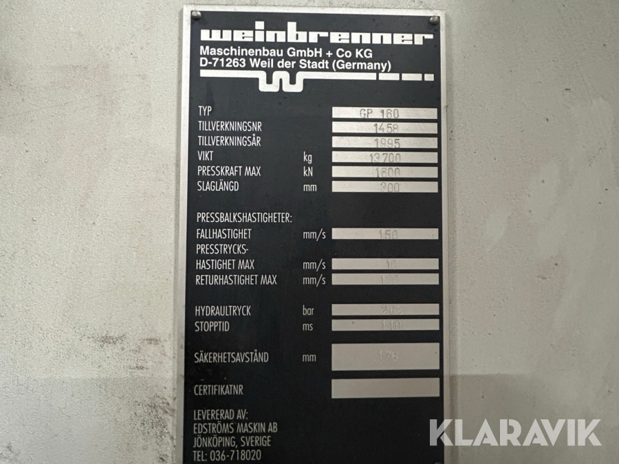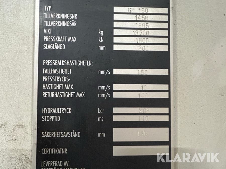 Boka frakt? Det finns ingen specifik information om frakt för just det här objektet, men om du skickar oss en förfrågan via vårt fraktformulär, så undersöker vi möjligheten. Paket, EU-pall eller större maskin? Klaravik har fraktavtal med Schenker och i de fall vi kan hjälpa till med frakt gäller det objekt som ryms i paket eller inom en EU-pall (upp till 120*80 cm och 990 kg). Det går att beställa frakt inom Sverige, dock inte till utlandet. Vid frakt på större maskiner rekommenderar vi gärna transportföretag som du kan kontakta.