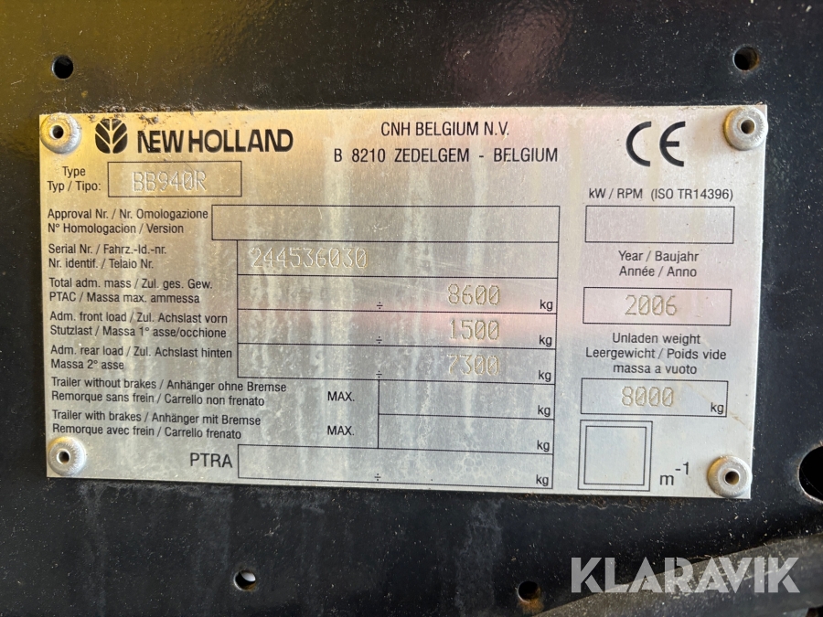Fyrkantspress New Holland BB940A