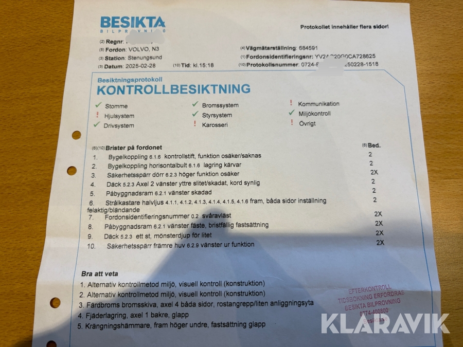 Du som köpare är skyldig att kontrollera objektet vid hämtning. Skiljer sig något avsevärt jämfört med informationen på klaravik.se? Kontakta då Klaravik innan du tar objektet från platsen. Läs fullständiga köpvillkor.