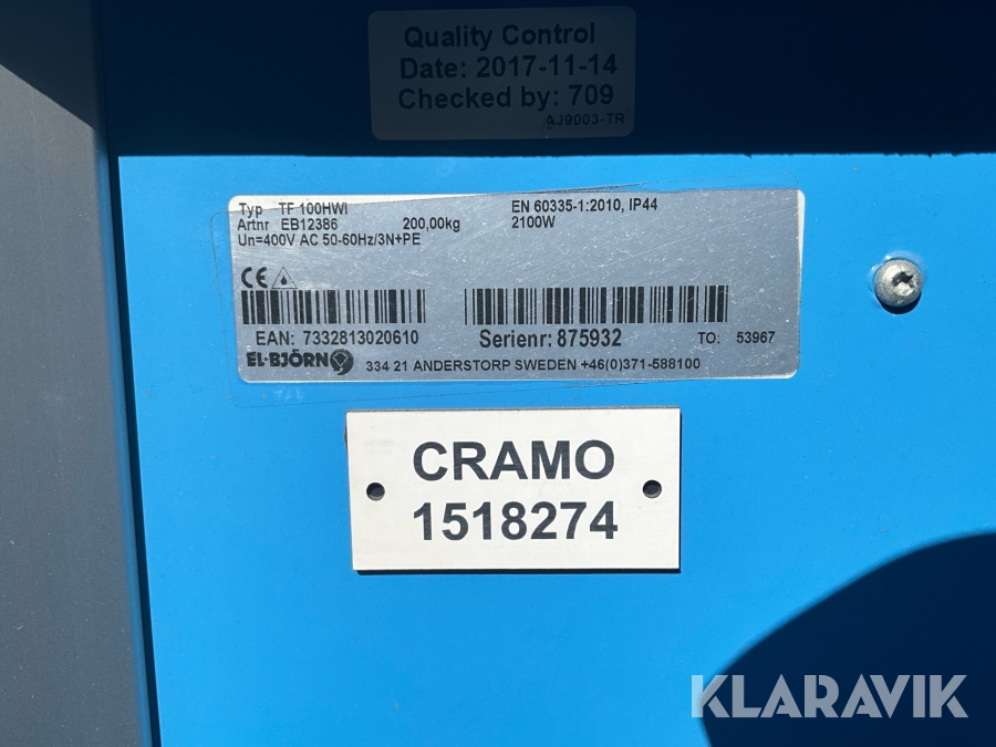 Du som köpare är skyldig att kontrollera objektet vid hämtning. Skiljer sig något avsevärt jämfört med informationen på klaravik.se? Kontakta då Klaravik innan du tar objektet från platsen. Läs fullständiga köpvillkor.