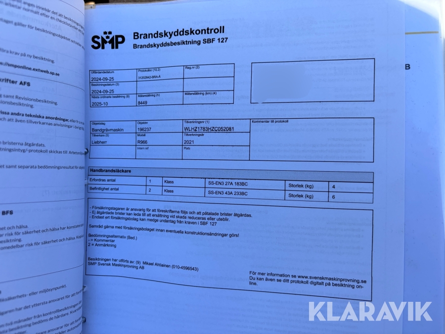 • Serie/chassinummer framgår