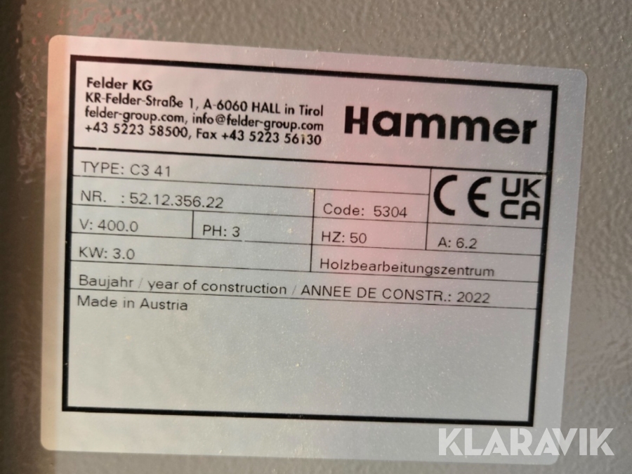 Kombimaskin Rikt & planhyvel Hammer C3 41 Dammsugare Felder