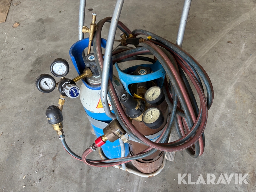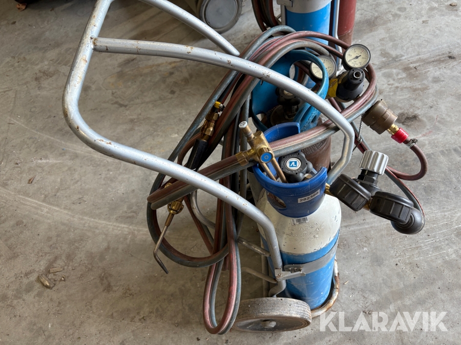 Gasflaskor med klocka och vagn 2st 10 L & 11 L