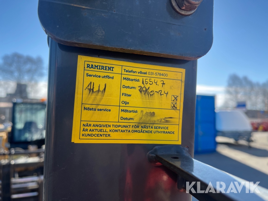 Pga platsbrist är det viktigt att du som köpare hämtar inom 12 dagar från auktionsavslut. Vid frågor om frakt kontakta trade@ramirent.se.
