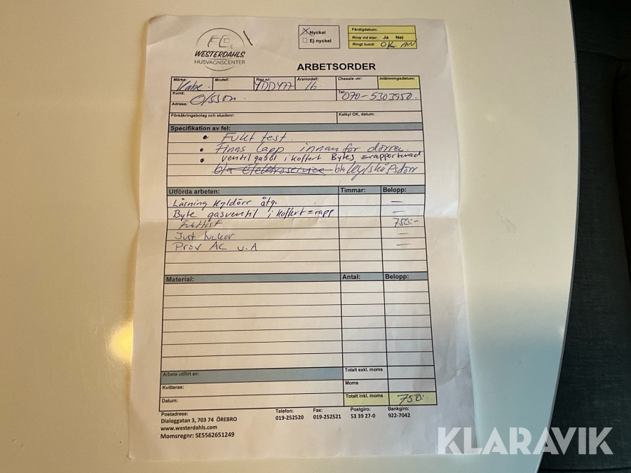 Du som köpare är skyldig att kontrollera objektet vid hämtning. Skiljer sig något avsevärt jämfört med informationen på klaravik.se? Kontakta då Klaravik innan du tar objektet från platsen. Läs fullständiga köpvillkor.