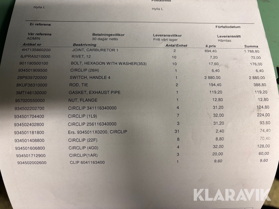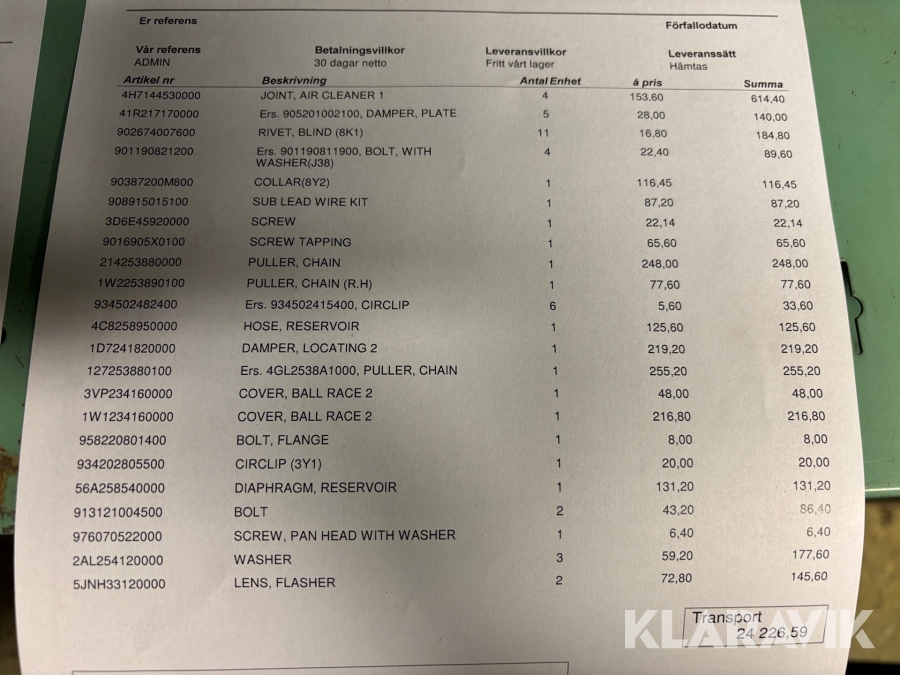 Parti med reservdelar till Yamaha