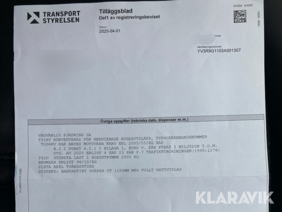 • Serie/chassinummer framgår