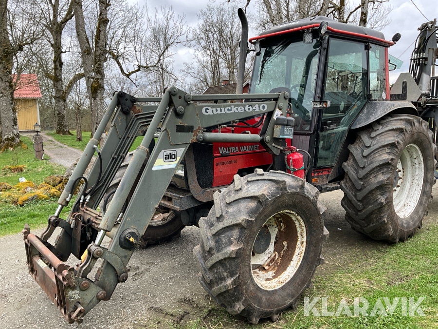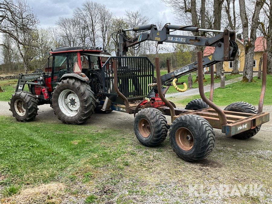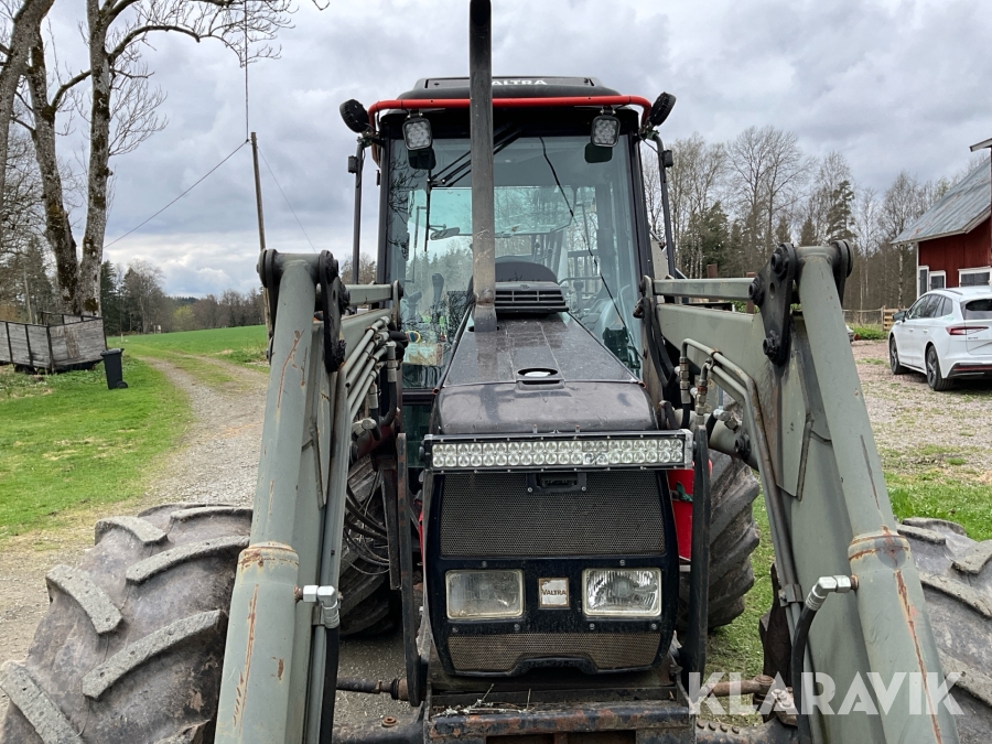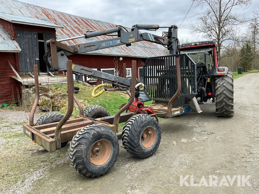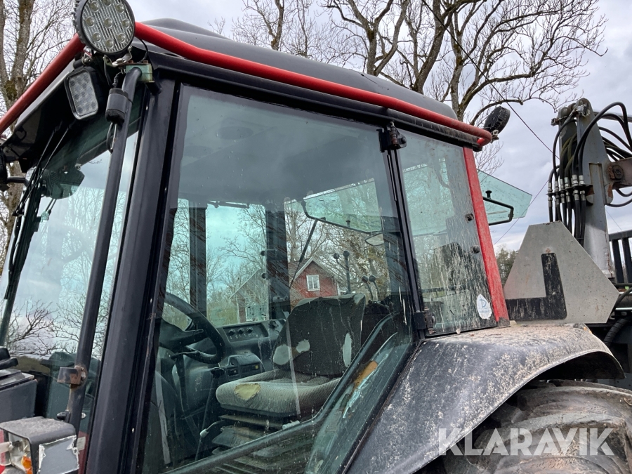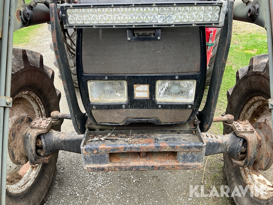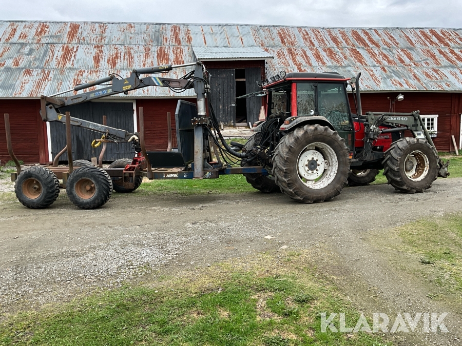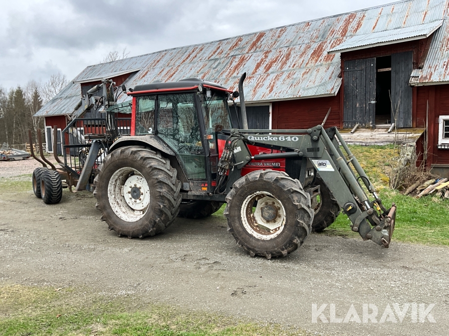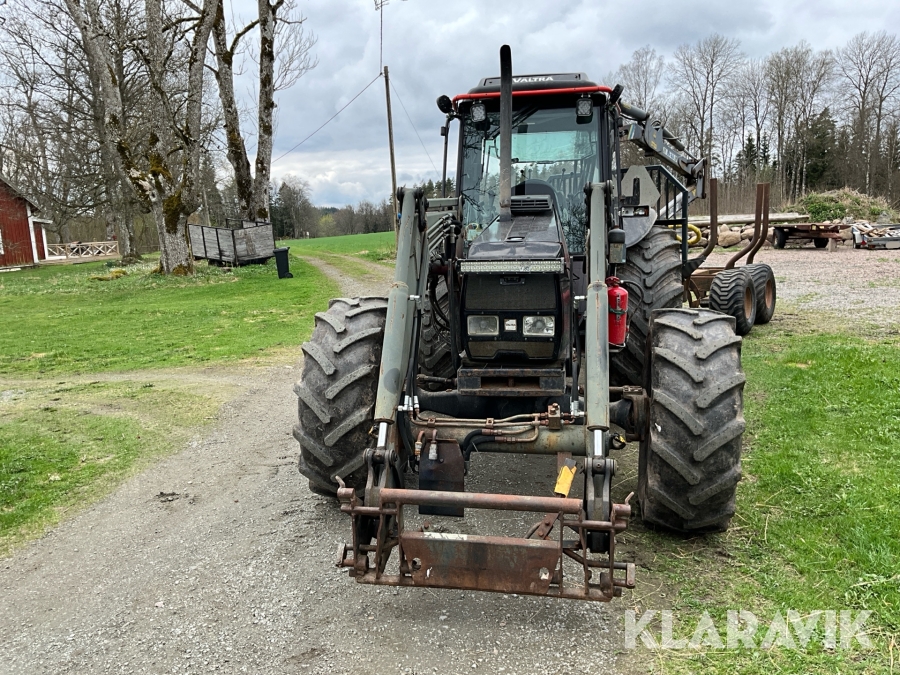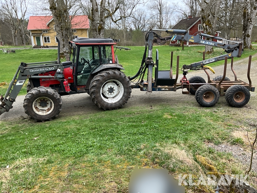 Traktor Valtra Valmet 900-4 med lastare, skogsvagn och kran med grip