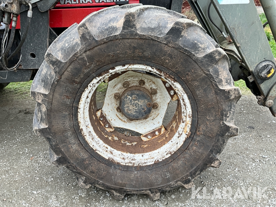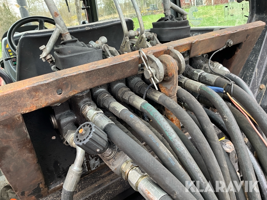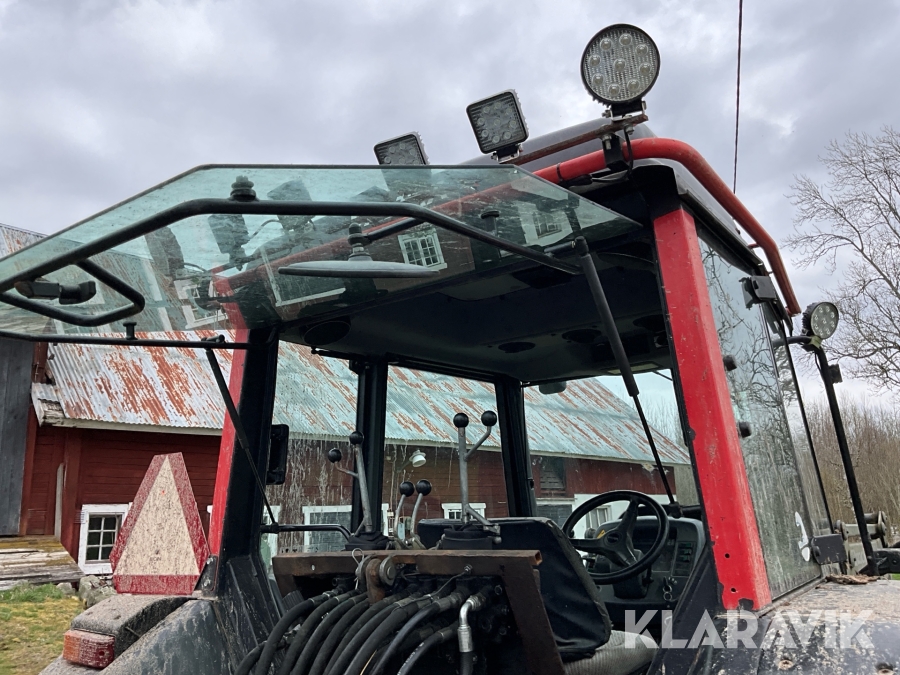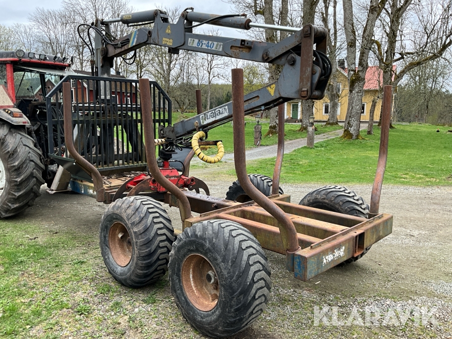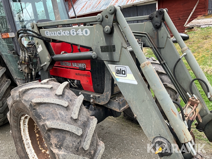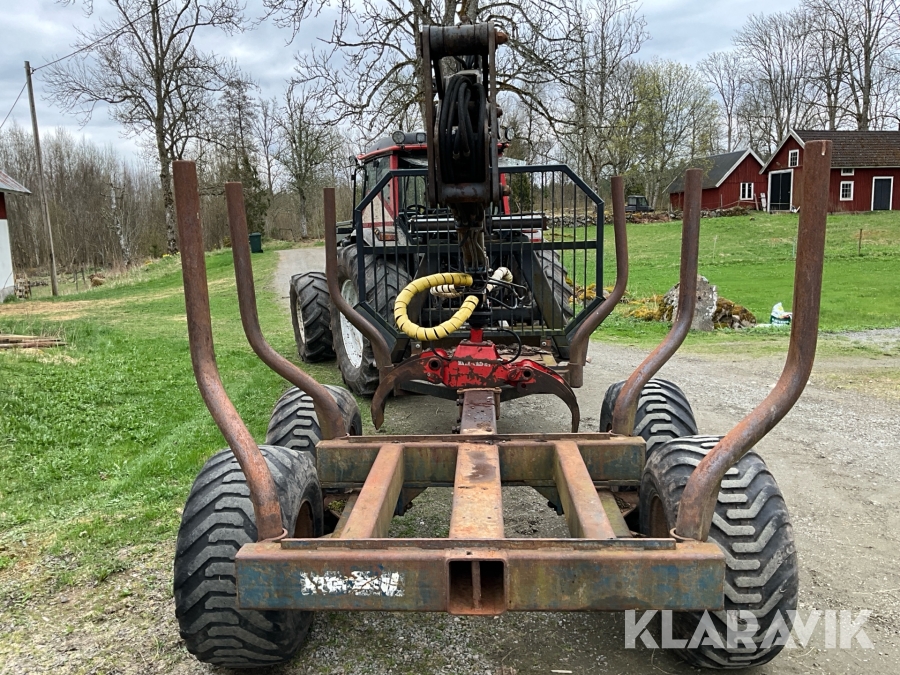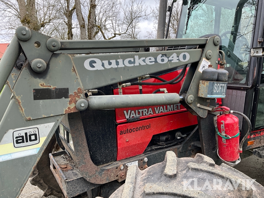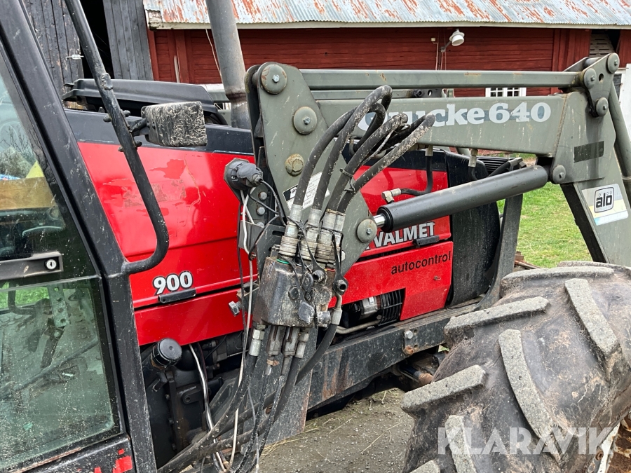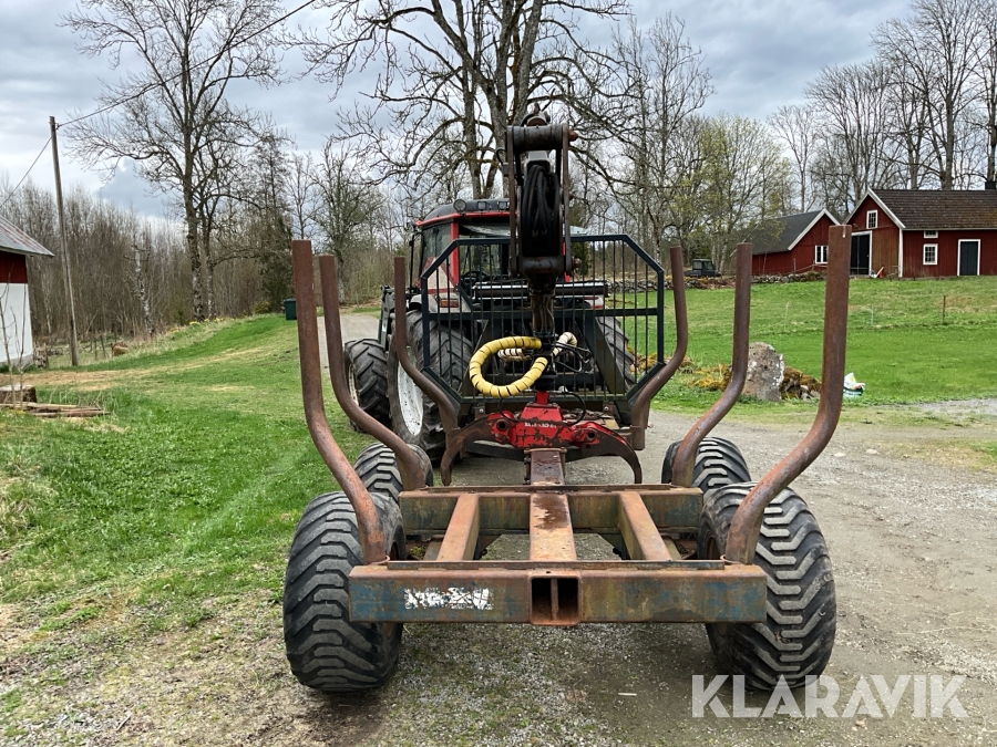 Traktor Valtra Valmet 900-4 med lastare, skogsvagn och kran med grip