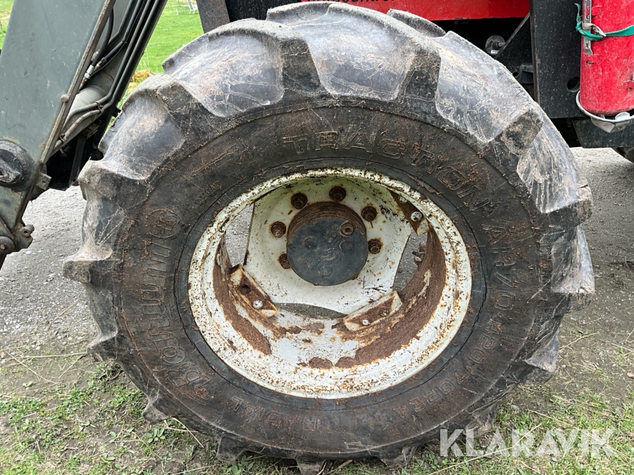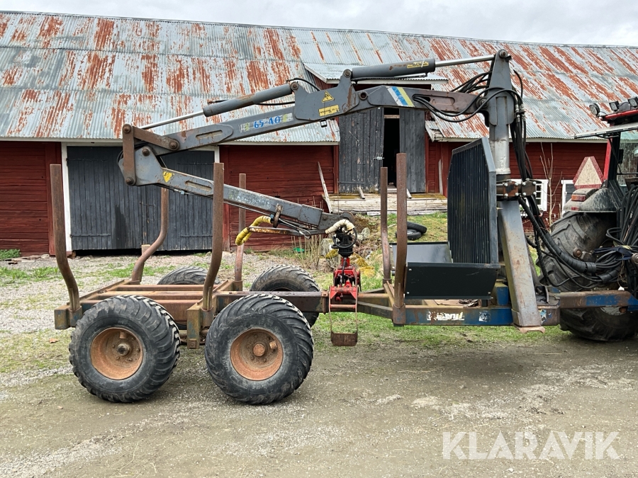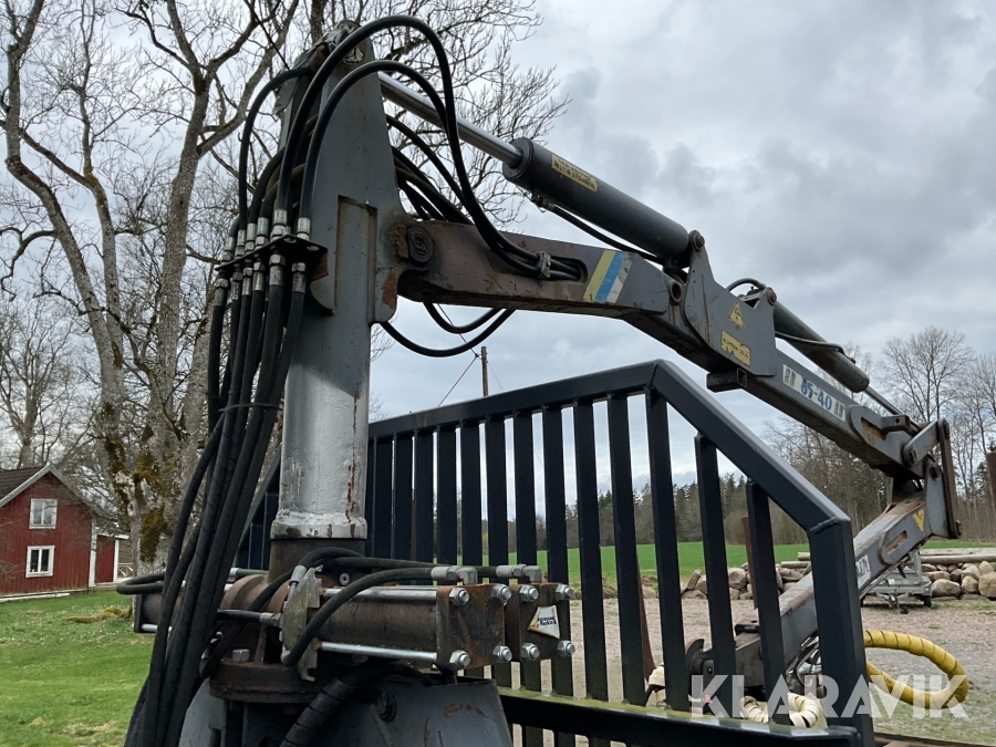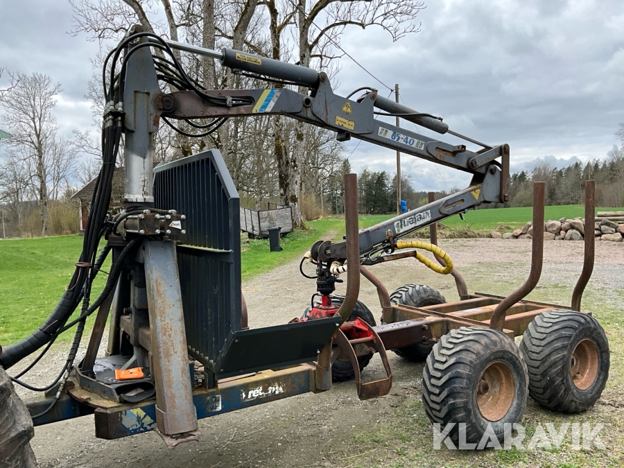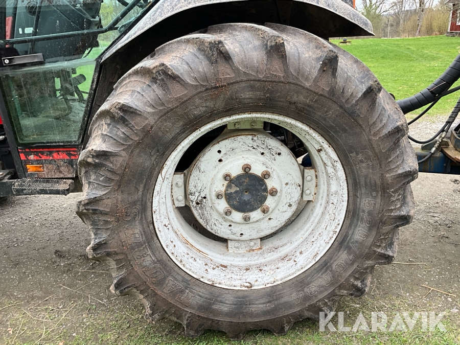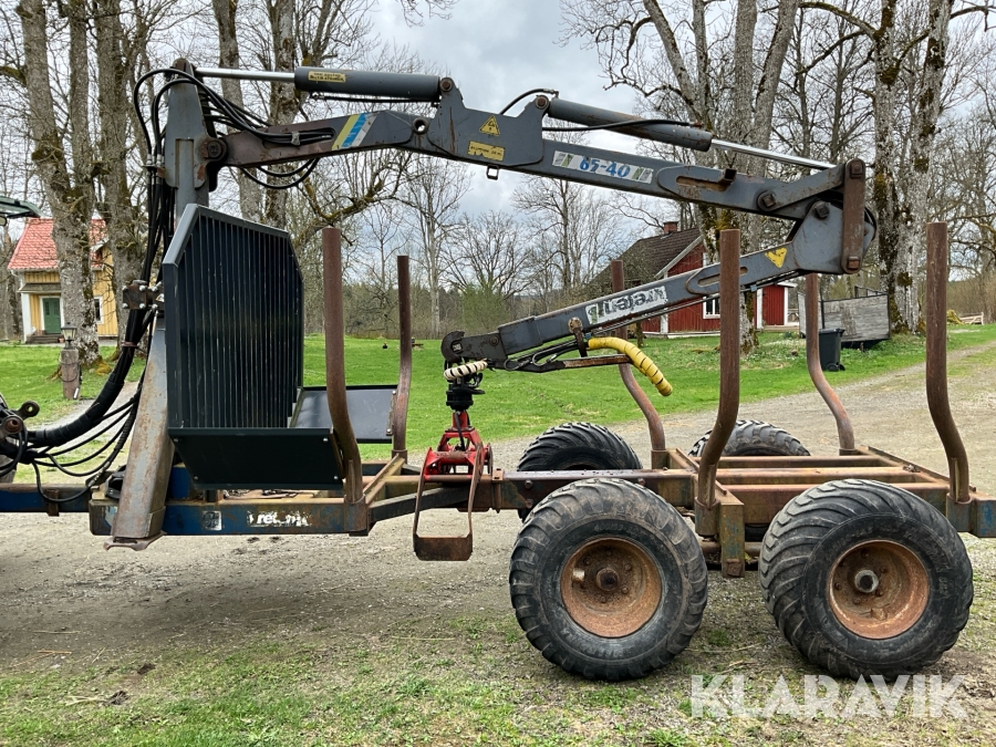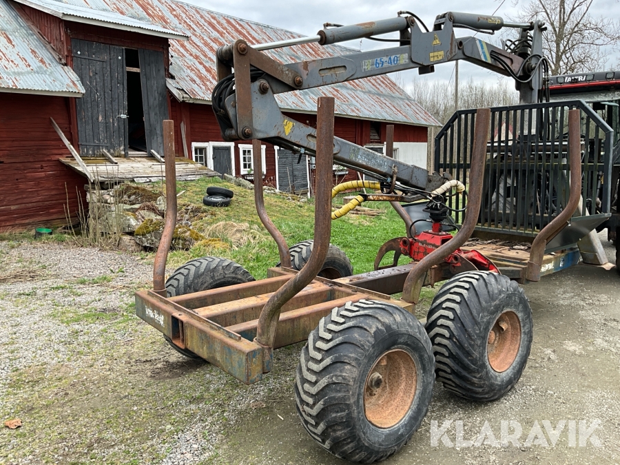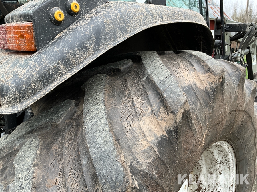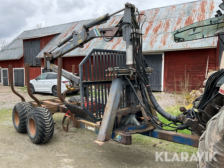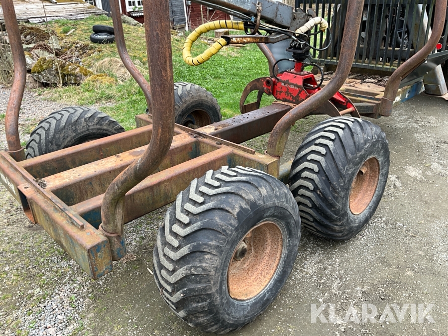 Traktor Valtra Valmet 900-4 med lastare, skogsvagn och kran med grip