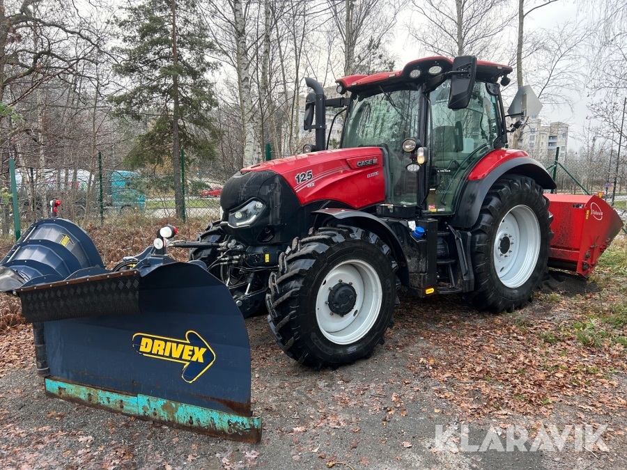 Traktor Case IH 125 CVX med vikplog & sandspridare