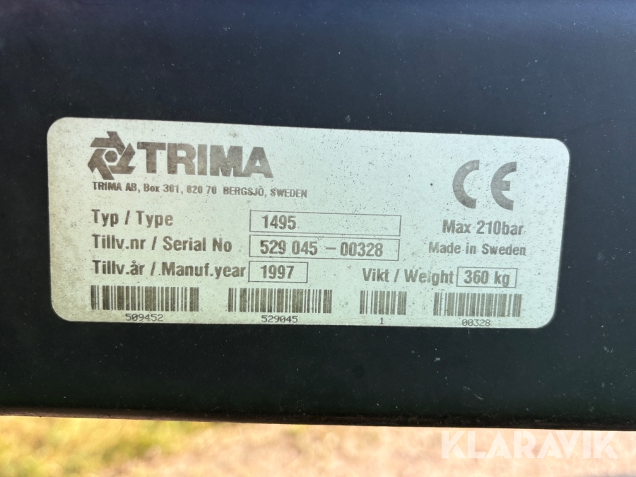 Boka frakt? Det finns ingen specifik information om frakt för just det här objektet, men om du skickar oss en förfrågan via vårt fraktformulär, så undersöker vi möjligheten. Paket, EU-pall eller större maskin? Klaravik har fraktavtal med Schenker och i de fall vi kan hjälpa till med frakt gäller det objekt som ryms i paket eller inom en EU-pall (upp till 120*80 cm och 990 kg). Det går att beställa frakt inom Sverige, dock inte till utlandet. Vid frakt på större maskiner rekommenderar vi gärna transportföretag som du kan kontakta.