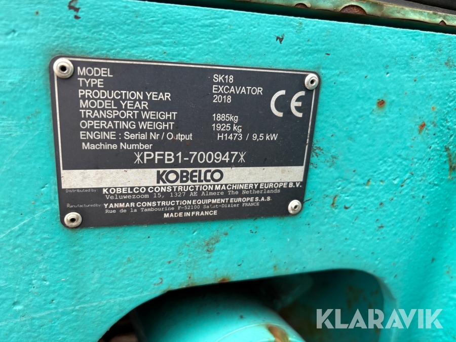 Grävmaskin Kobelco SK18 S30 Engcon tiltrotator, 4st redskap bla Timmergrip