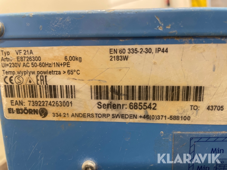 Varmluftsfläktar El-Björn VF 21 A